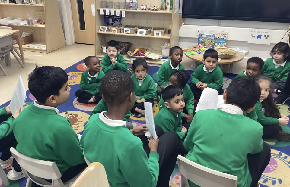 A group of year 5 children went to visit reception to read their stories to the younger children. They shared the books that they had created, and read out the stories that they had written based on 1001 Arabian Nights tales. It was a lovely experience for all, the year 5s were excited to show their work and the younger children were a fabulous audience, who listened intently.