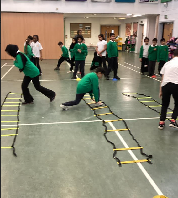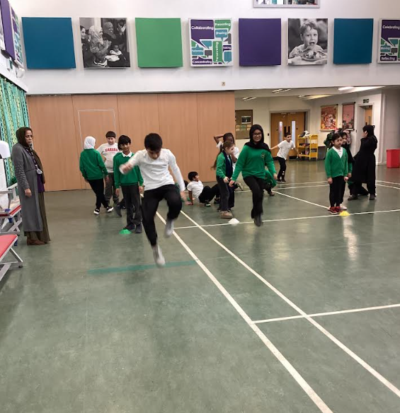 Within our PE lesson, we focused on developing childrens’ understanding of flight and rotation through a series of structured activities. The class began by warming up the key muscle groups needed for jumping, ensuring their legs, core, and hips were ready for more demanding movements. Pupils then explored how knee position affects height and control, practising bringing their knees closer to their chest to improve rotation in the air. Using agility ladders, they worked on co‑ordination and rhythm, helping them prepare for more controlled take‑offs and landings. To finish, the class examined the eccentric phase of a jump—the moment their body absorbs force on the way down—and practised safe, balanced landings by bending their knees, keeping their weight centred, and maintaining control.