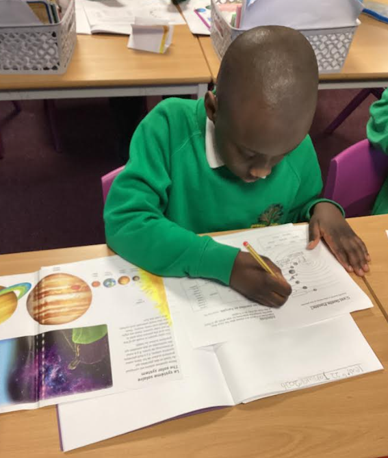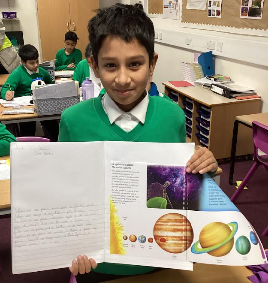 In year 5, the children have been learning about ‘Le Systeme Solaire’ which is the solar system. The children thoroughly enjoyed looking at the solar system and learning the French vocabulary relating to it. After learning the French vocabulary, we learnt to write adjectives to describe the planets.