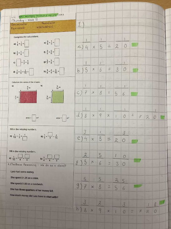It’s been a big month of fractions for Year 6 and we have been blown away by how much they have learned in a short time. With growing confidence, they can now tackle fraction problems involving all four operations, and some of us have even begun to apply our mathematical skills to solving a range of reasoning problems. As you can see, our children take great pride in the presentation of their work and they know how important it is to work tidily and systematically in order to avoid (and notice) mistakes. Well done, Year 6.