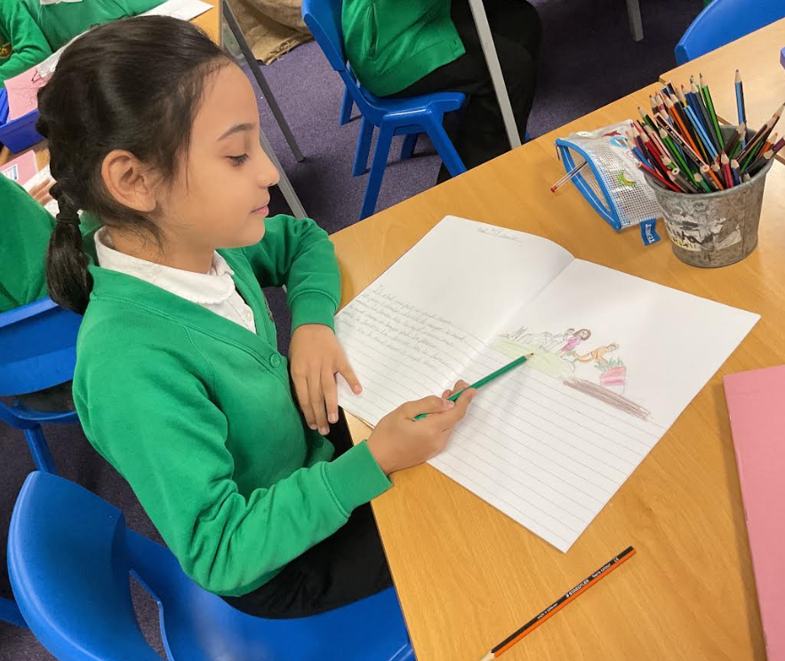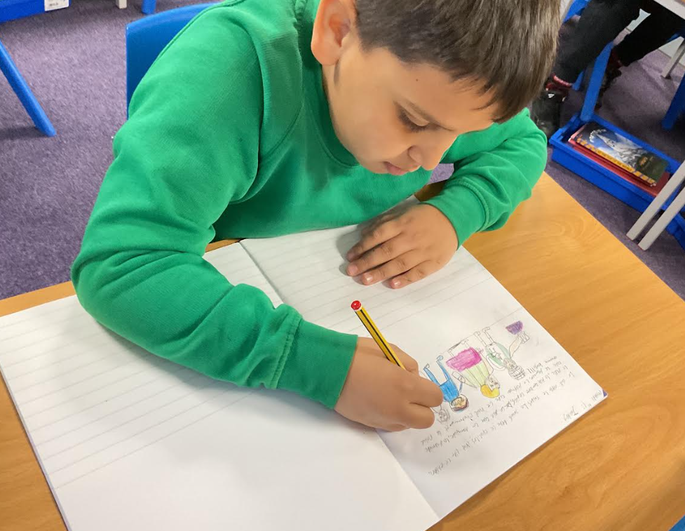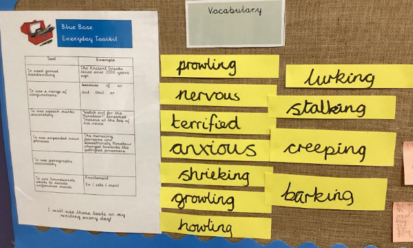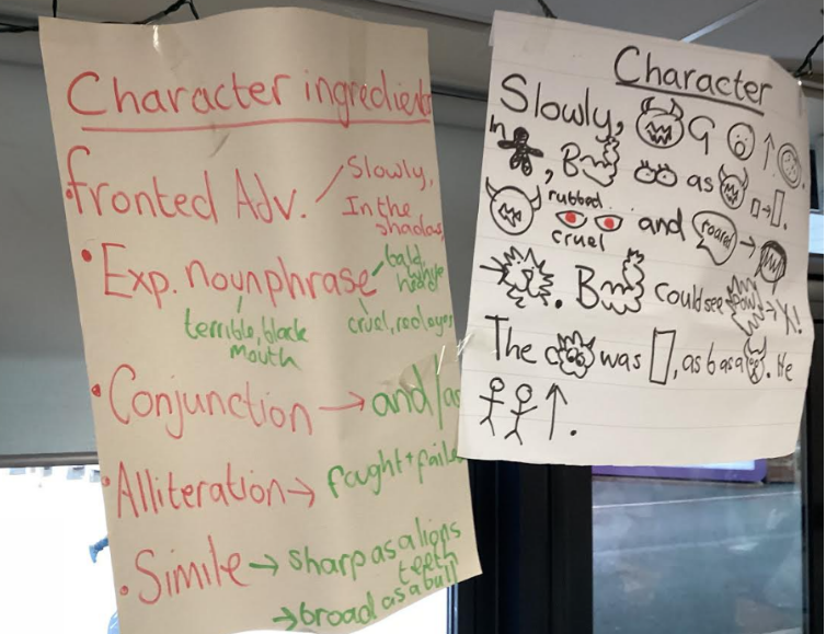 This week in Blue Base, we have been learning our model text by heart. We have been identifying the ingredients of what makes a good setting, a creative character description, an effective link and finally a dialogue that illuminates the character and moves the action forward.