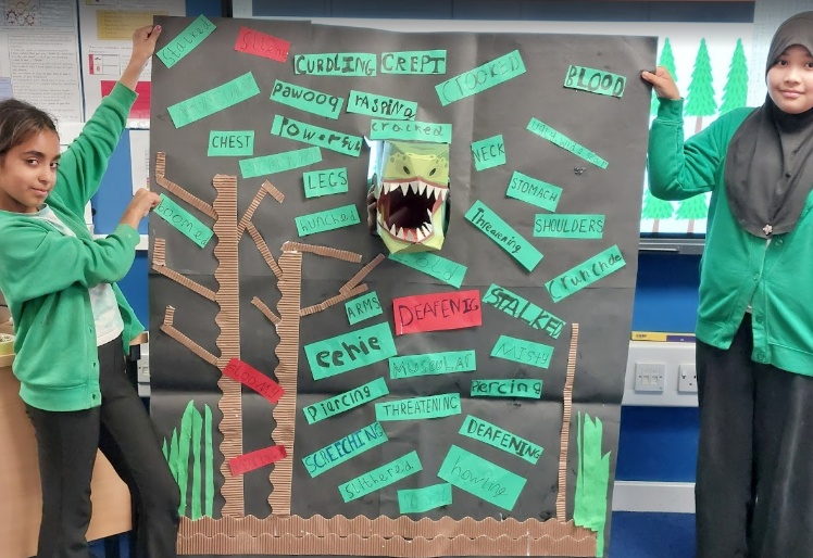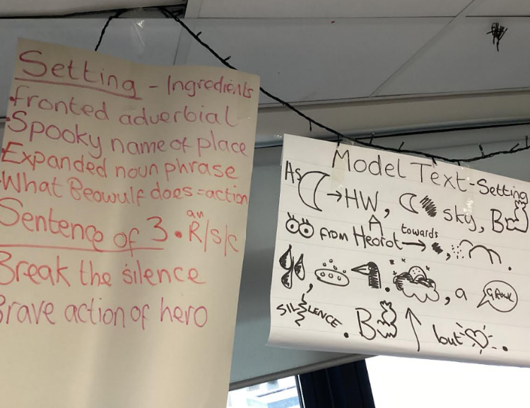 Writing focus this week begins by practising the model text, until we can memorise it. We will be listening to the “music” of our sentences, rehearsing the cadence of an expanded noun phrase. We will then create a writer’s toolkit as we box up the model text and identify what the writer has used to create an imaginative setting and colourful character description. Gabriel has brought in leaves from his garden to decorate our “swamp” as we immerse ourselves in the Anglo-Saxon legend of Beowulf!