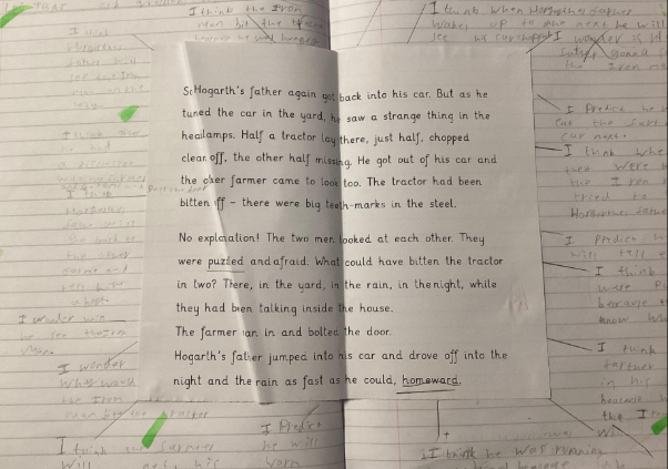 We are excited to share that our Year 4 classes have been diving into the enchanting world of The Iron Man by Ted Hughes during our reading comprehension lessons. This captivating story has provided a fantastic backdrop for us to explore various reading skills.