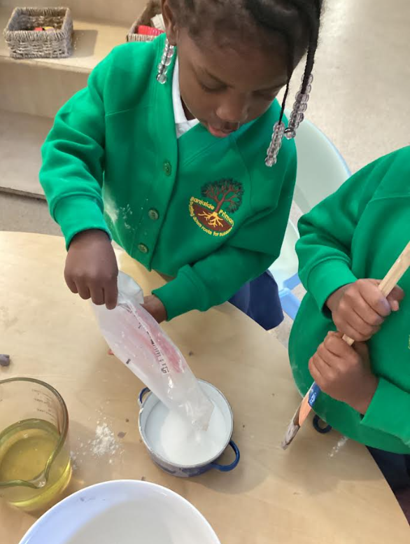 This week, children have been looking at how materials change by making 3 bears porridge. They have been asking and answering questions about different foods and trying and tasting them. They have also been exploring their familiar world by looking at changes in the weather and their outside environment. Also, children have been using their enquiry skills, exploring how forces work.
