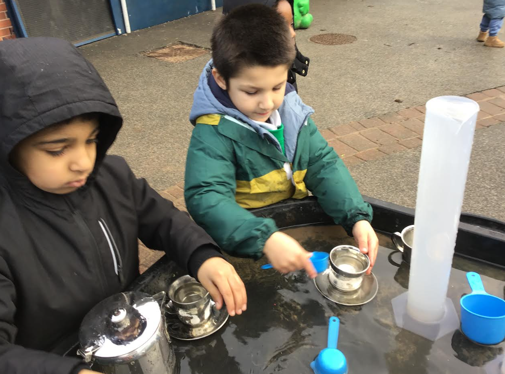 This week in reception we have been teaching the children the word 'equal' as the same as in different contexts. We taught the children how this might look through equal parties using the teddy bears and our home corners to apply this. We then took this learning of language outside and applied it within our sand and water areas. Children were taught how to use two identical containers to fill them with equal amounts. The children did this with a variety of scoops, tea sets, cylinders and measuring jugs, delving deep into capacity through practical, hands on experiences. Children took this further by lining up equal sand castles and counting their sets. Adults interacted with the children, modelling and asking questions about one more and one less than what they have built. This brought about some excellent explorations, going beyond ten and working with numbers to 20. Super learning!