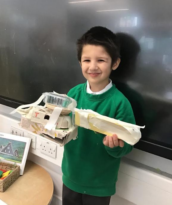 Many of our Expressive Arts and Design skills taught, are through child-led projects. Children have interest led planning time to think of creations that they would like to pursue. Teachers make enhancements to continuous provision that will scaffold their thinking and creativity and allow them to deepen their learning of the many skills needed to achieve the Early Learning Goal and be ready for Year 1. The teachers are skilled in moving on the learning through these projects and hope to expand the amount of areas that each project will hit. For example, when an interest formed around camping, one child decided to create a trap that would capture any wild animals that might approach his tent at night. As he used new skills to create this model, the teacher used carefully scaffolding interactions to introduce new vocabulary to the child and get the child to think deeply about the reasons behind each part of his trap. Moving it on even further, the teacher encouraged him to use his literacy skills to write a sign that told everyone what he had made. A great example of child-led writing with a purpose.