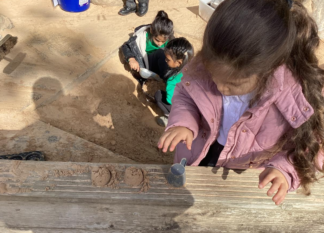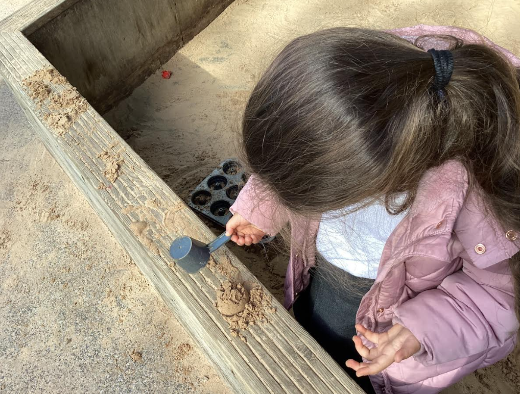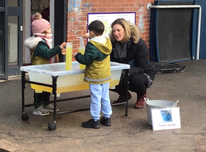 Children inside enjoyed the new containers in the sand area. We taught words such as twist, sprinkle and half to guide the children’s fascination with these exciting resources!