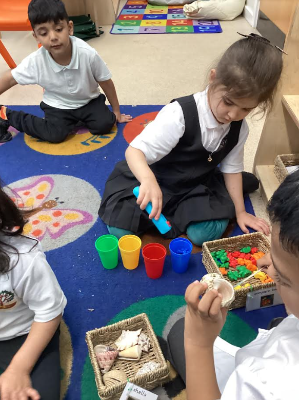 As well as adult-led class sessions, maths is very much taught/modelled/assessed through the interests of children through provision. Staff are trained to use the SHREK approach, in which they use interactions to move learning on. This can take form in many ways, such as teaching new vocabulary, extending vocabulary, modelling new concepts or creating opportunities for hard thinking through questioning and challenges.