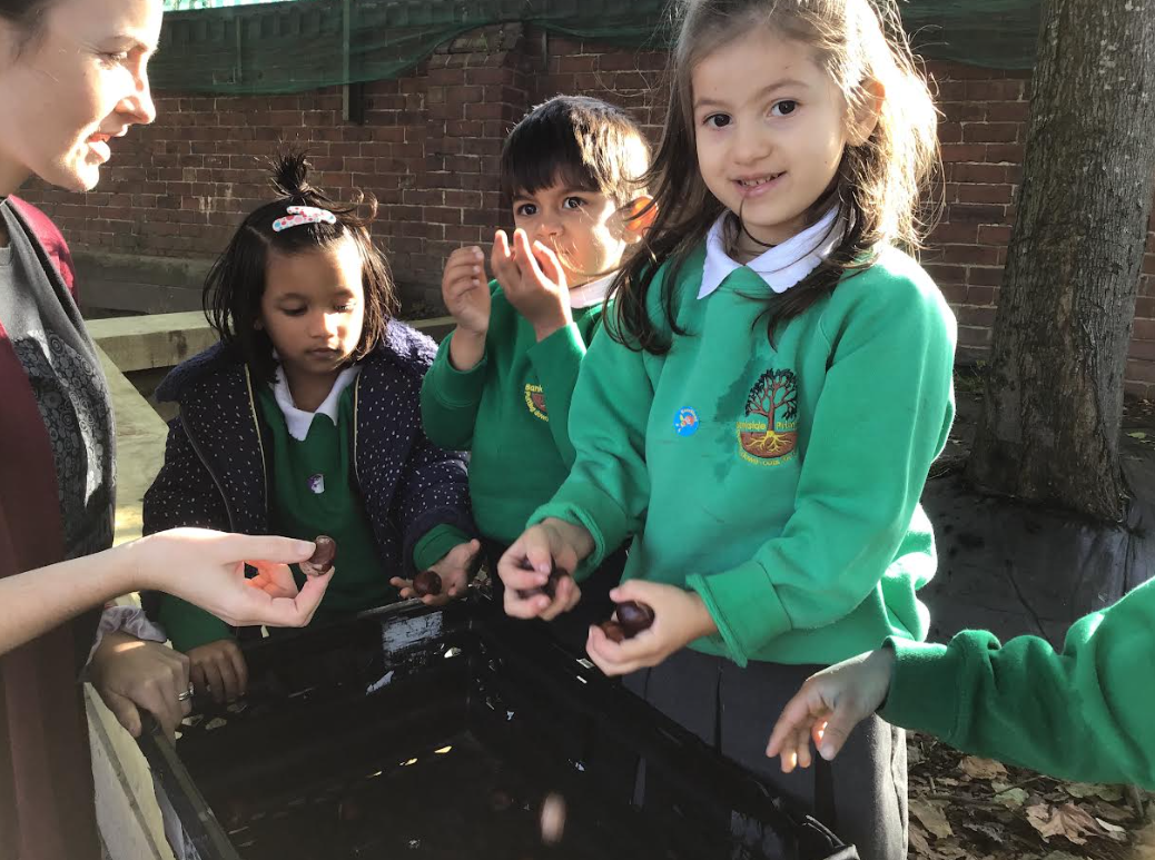 This week we have been exploring the great outdoors and really using this as a hook for learning new and ambitious vocabulary. Adults scattered Autumn treasures in our woodland area and the children were fascinated by what they had found! Adults modelled language whilst collecting the items such as spiky shell and smooth conker. The children enjoyed looking at leaves and for some children, learning names of colours was the prime objective. A super start to our Autumn exploration.