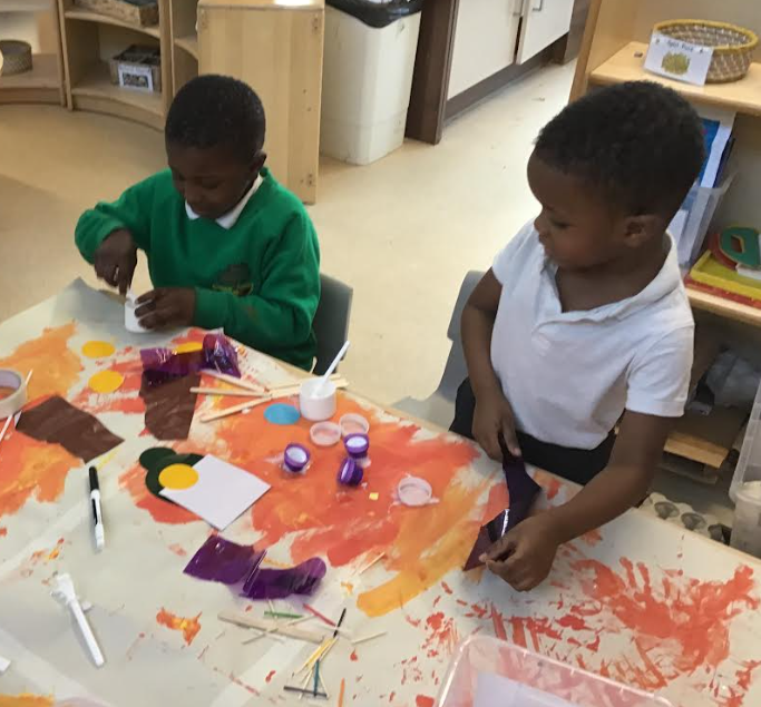This week has been our Big Create week! The children have been answering the key driver question: What might we see on an Autumn day...The children have spent time collecting their own resources in our outside area to Create their representations of autumn. The children used their new found joining and cutting skills to add their autumn collections to paper and think of ways to arrange them. Some children made changes to the leaves using scissors to make their own leaf shapes. Adults sat with the children and made comments and asked questions to gain knowledge of their understanding about autumn changes and why they happen. Some children decided to add pumpkins and squashes to their artwork, talking about harvesting and our story of the Enormous Turnip. What a great week of creativity!