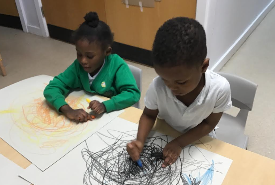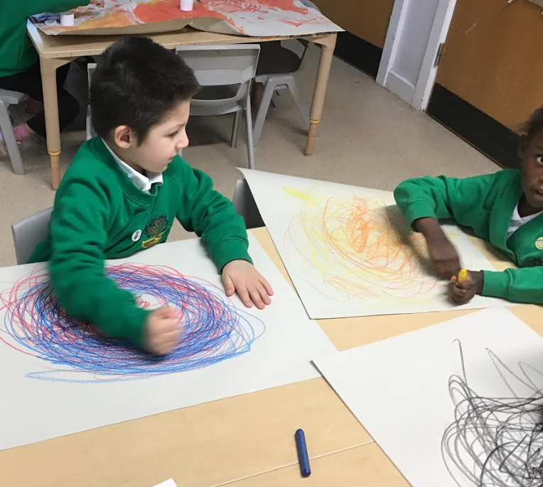 It was noted that children were finding the art of drawing difficult, if they were struggling with pencil pressure. We therefore ran an intervention in which children had the time to explore pressure through early mark making concepts and a good old scribble using colours and again words to describe it.