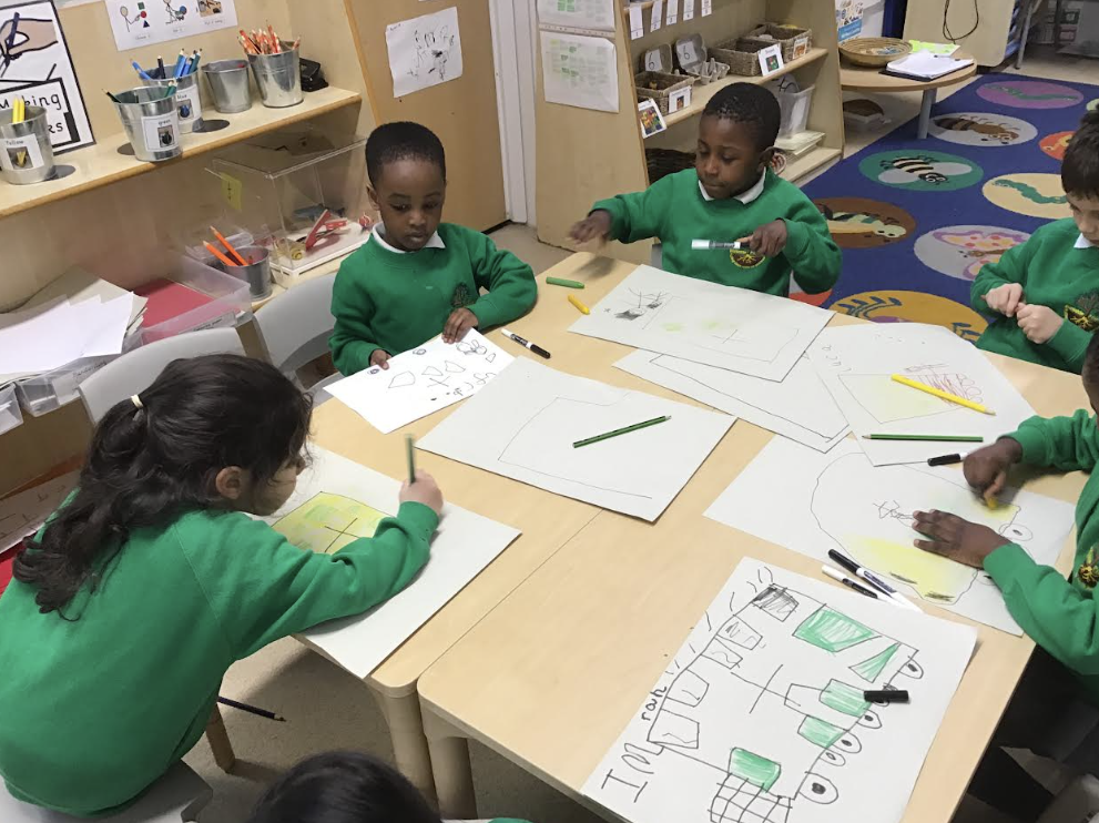 Many of our Expressive Arts and Design skills taught, are through child-led projects. Children have interest led planning time to think of creations that they would like to pursue. Teachers make enhancements to continuous provision that will scaffold their thinking and creativity and allow them to deepen their learning of the many skills needed to achieve the Early Learning Goal and be ready for Year 1.  The teachers are skilled in moving on the learning through these projects and hope to expand the amount of areas that each project will hit. For example, when an interest formed around camping, one child decided to create a trap that would capture any wild animals that might approach his tent at night. As he used new skills to create this model, the teacher used carefully scaffolding interactions to introduce new vocabulary to the child and get the child to think deeply about the reasons behind each part of his trap. Moving it on even further, the teacher encouraged him to use his literacy skills to write a sign that told everyone what he had made. A great example of child-led writing with a purpose.