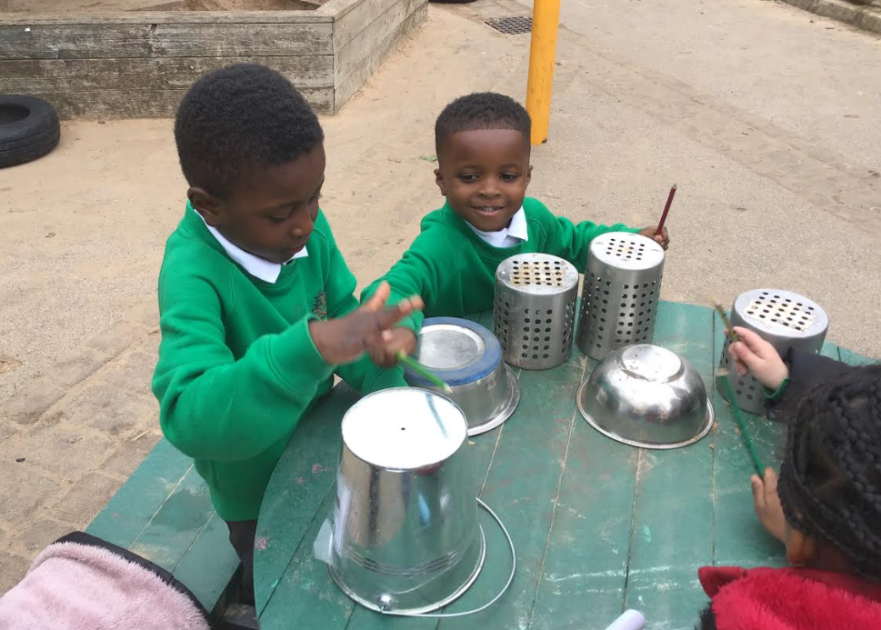 This week we have been focusing on the children's ability to listen through instruments. Many children have been fascinated with banging metal objects and making lots of noise. We extended this by teaching children how to drum a given beat. The children needed to listen to the adults and copy the rhythm with their own drum. Some children extended this further by making up their own beats! Great listening and attention.