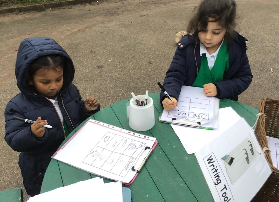 We are starting to write in reception! First we started with transcription, getting the children to practice their handwriting and spelling skills. We target the children through skill led planning, allowing them to practice through using dough or having a go at handwriting patterns. Children are learning how to spell words through their phonics curriculum and then having opportunities to practice these skills through skill led plans using their familiar book characters. We then encourage children to use these skills through their play such as making marks to show what the weather is like using charts or making mini books.