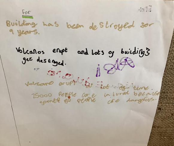 As a final lesson in our geography topic, Natural Disasters, the children investigated news articles about life in the Pacific ring of fire. They then had a debate whether they would want to live in the ring of fire or not. They had to justify their answers.