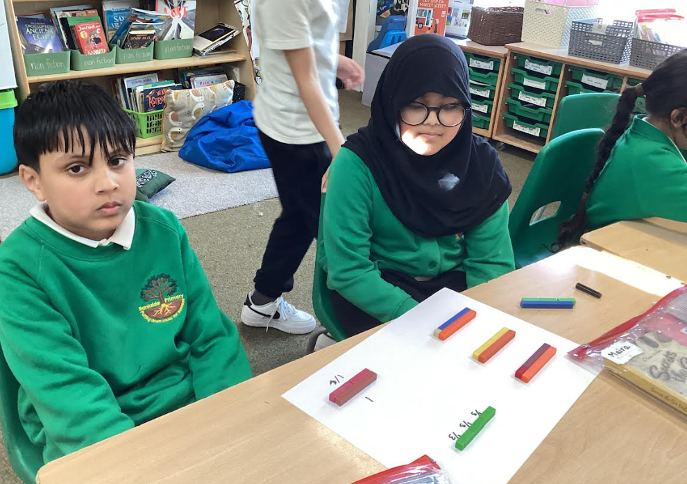 The children have been using their collaboration cog in maths to investigate fractions using the cuisenaire rods. They had to work in groups to show fractions and wholes in different ways using the different length rods.
