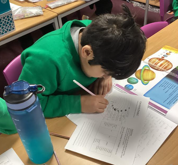 In year 5, the children have been learning about ‘Le Systeme Solaire’ which is the solar system. The children thoroughly enjoyed looking at the solar system and learning the French vocabulary relating to it. After learning the French vocabulary, we learnt to write adjectives to describe the planets.