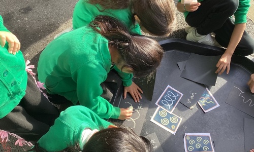 This week in our playground provision at lunchtime, we have been enjoying using different materials to make firework pictures!