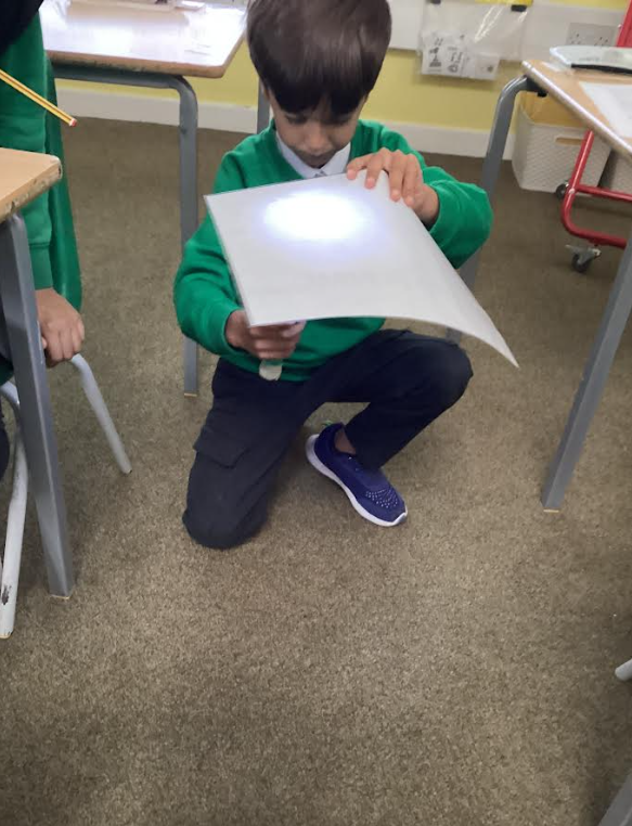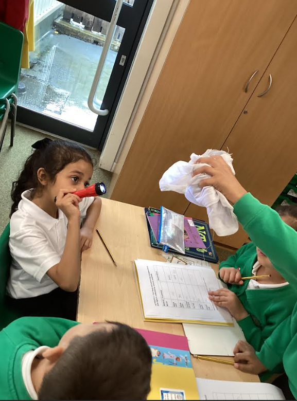 In green base, our science focus has been light and dark. As part of the topic the children have investigate what dark is, what surfaces reflect light and what changes shadows. Here are some pictures of the practical work we have been doing. Science investigations have been a great way for the children to use the collaboration cogs too.