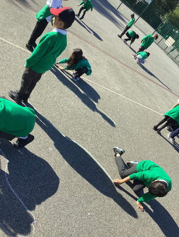 In green base the children have been doing geometry in maths. They used their knowledge of direction of turns and amount of turn to guide each other safely around the playground.